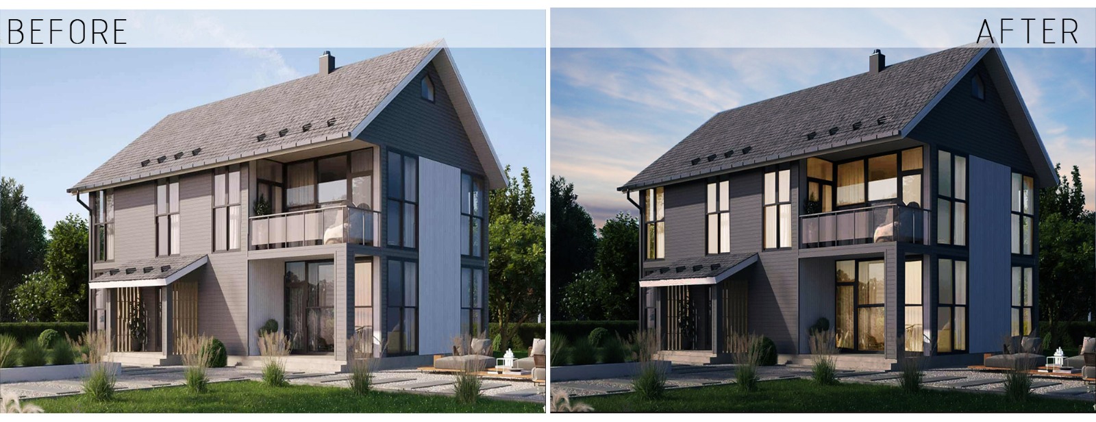Twilight editing is the process of conversion of a day photo to virtual dusk photo. It allows you to get higher value buyers for your property and stands out from the crowd.