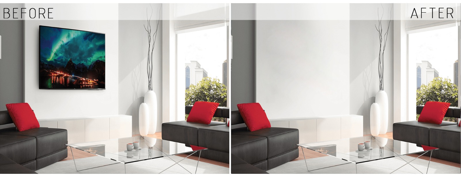 Decluttering room is a process where we can remove unnecessary items from (an untidy or overcrowded place) with the help of CGI SOFTWARE. It helps to you attract more buyer. You have a opportunity to redecorate home and send the pictures for virtualy staging.