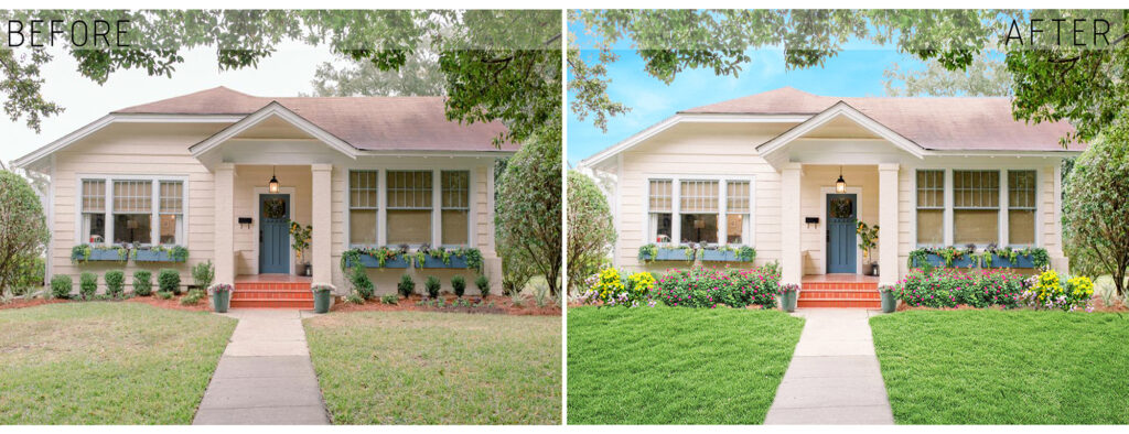 Digital landscaping is an innovative process that uses advanced visualization techniques to create a realistic representation of how your property will look after landscaping or during the lush spring season. By digitally adding key elements such as plants, grass, trees, flowers, bushes, and even a picturesque, realistic sky, this technique helps bring your future outdoor space to life before any physical work begins.
